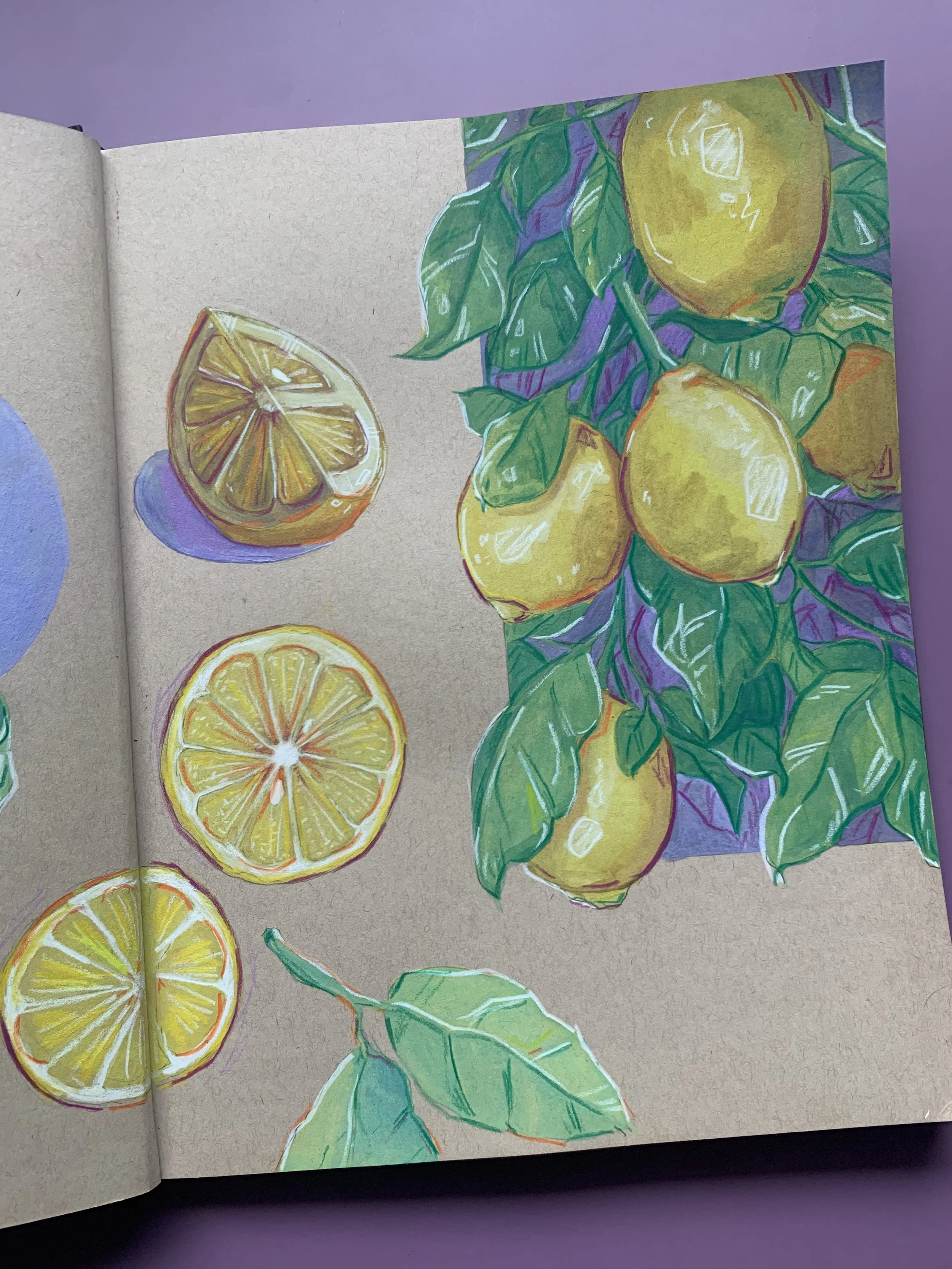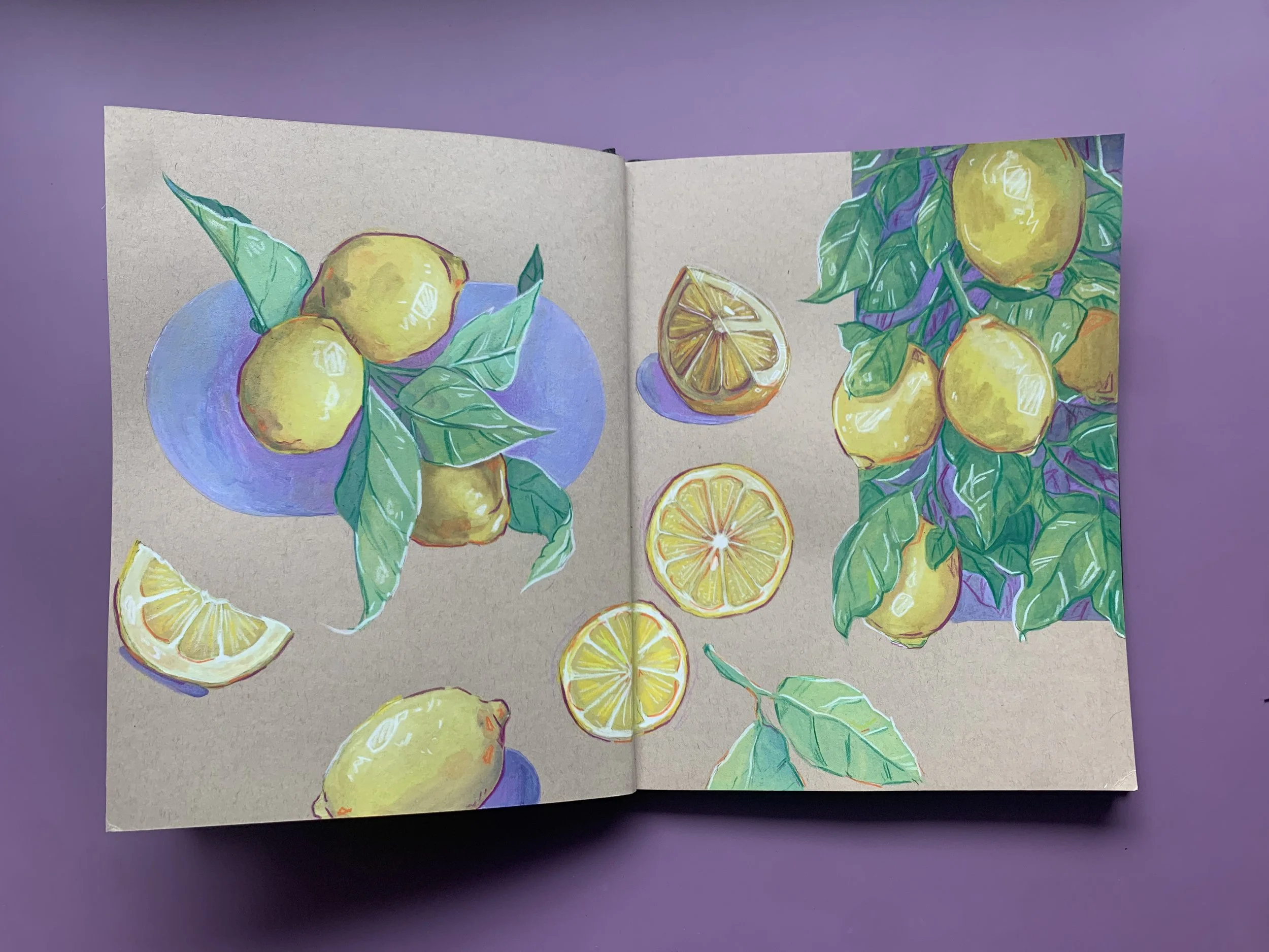 this project started out as a mixed media study of lemons. based on the initial engagement from social posts, the illustrations were used to develop a full stationery line of greeting cards, sticker sheets, individual stickers, and wrapping paper.
